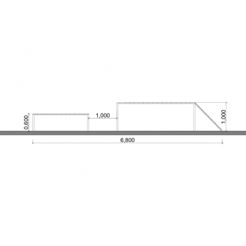 • Довжина 6800 мм (складається з двох частин довжиною 3800 мм та 2000, відстань між ними 1000 мм для стрибка)