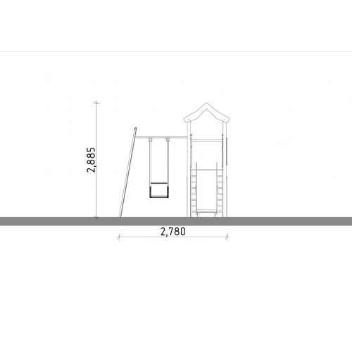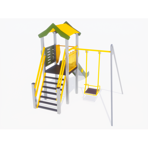 • До комплексу прилаштована одинарна гойдалка, яка складається з таких елементів: труба профільна 60х40*2, Ду40*2,8, Ду25*2,8, Ду15*2,8 та фанерного сидіння С/ГЛ 15мм.