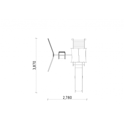 • Для комфортного підйому комплекс обладнаний східцями, каркас яких виготовленими з профільної труби 40х25*2, смуги 50х4 та сходинками з водостійкої фанери 15мм, поручнями з профільної труби 50х30*2.