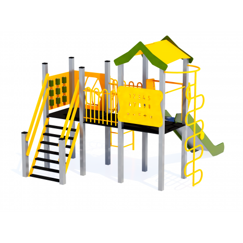 • Комплекс має ігрові елементи "хрестики-нулики", цифри та металеві паркани виготовлені з профільної труби 30х20*2, труби Ду15*2,8.
