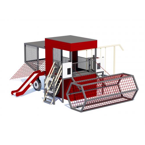 прикріплено подвійну гойдалку та гірку з боковими накладками для безпечного