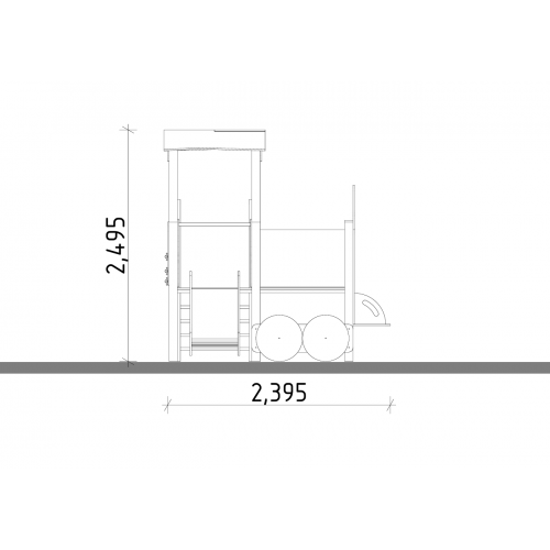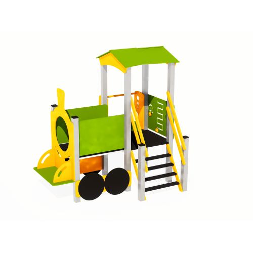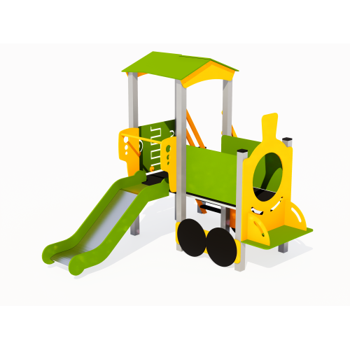 • Комплекс облаштований декоративними елементами у вигляді потягу та містить в собі ігровий елемент "бізіборд".