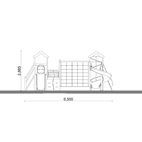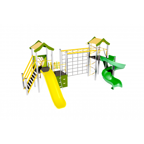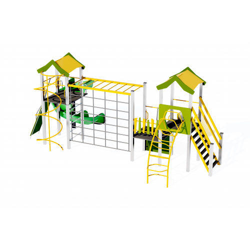 • Комплекс має металеві перила виготовлені з труби 30х20*2, 20х20*2, обмежувальні трубки Ду20*2,8, сітки з армованого канату 16 мм.