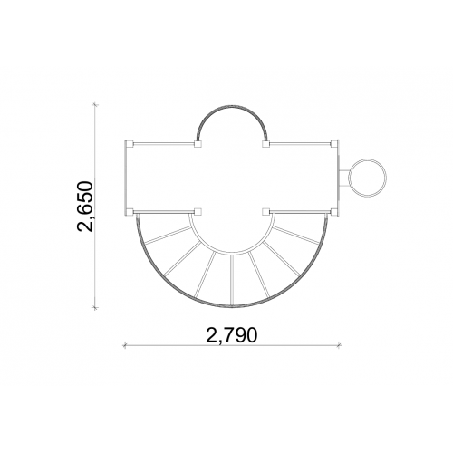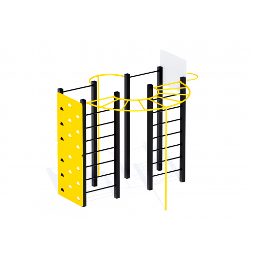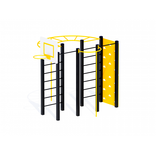 • Комплекс складається: шведська стінка з водостійкої фанери 15 мм, шведська стінка з металевих трубок, турніки універсальні, щит стрітбольний з кільцем, пожежний спуск (2 шт.).